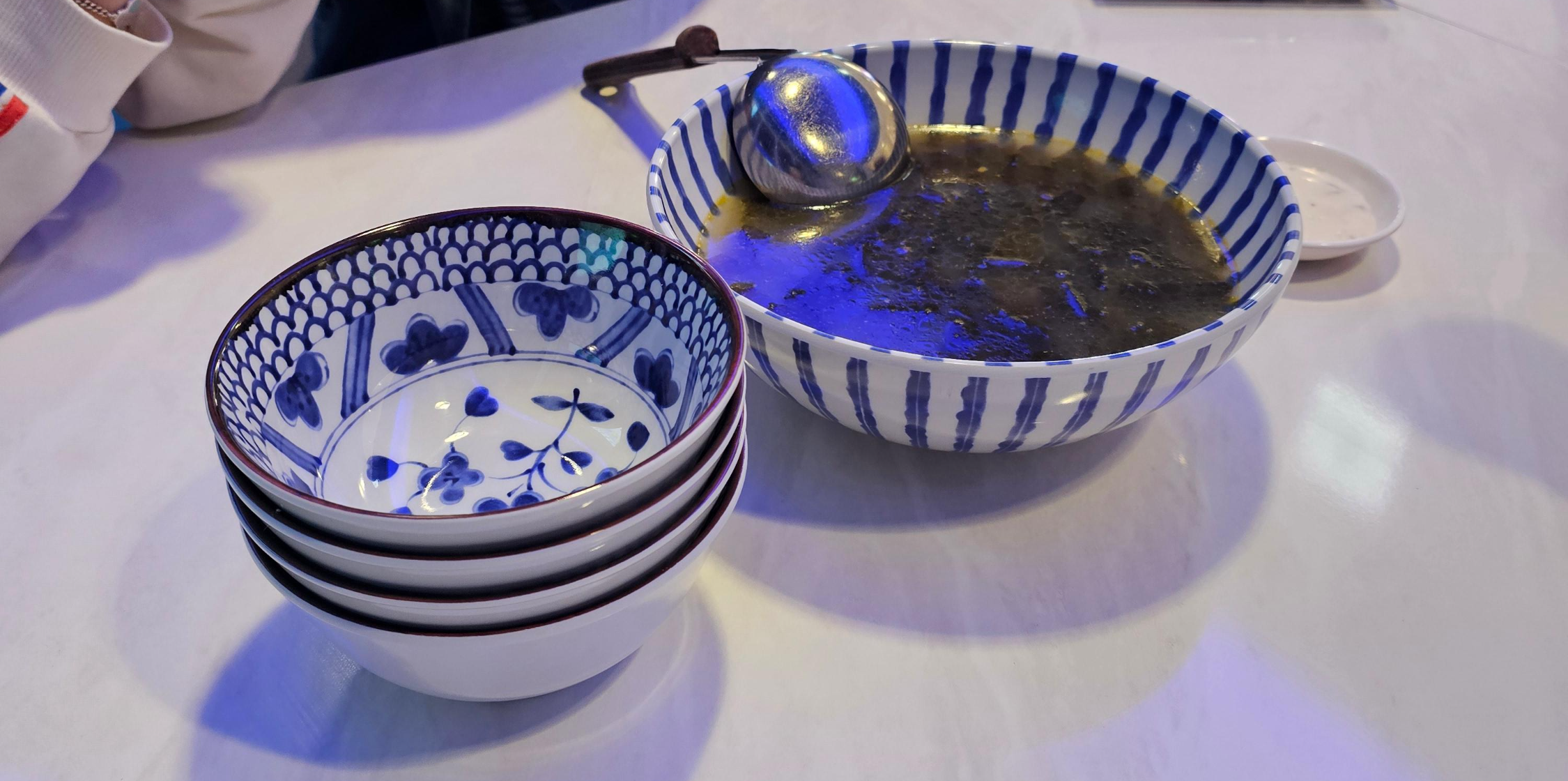 음식 주문하고 조금 지나니까 미역국이 나왔어요.