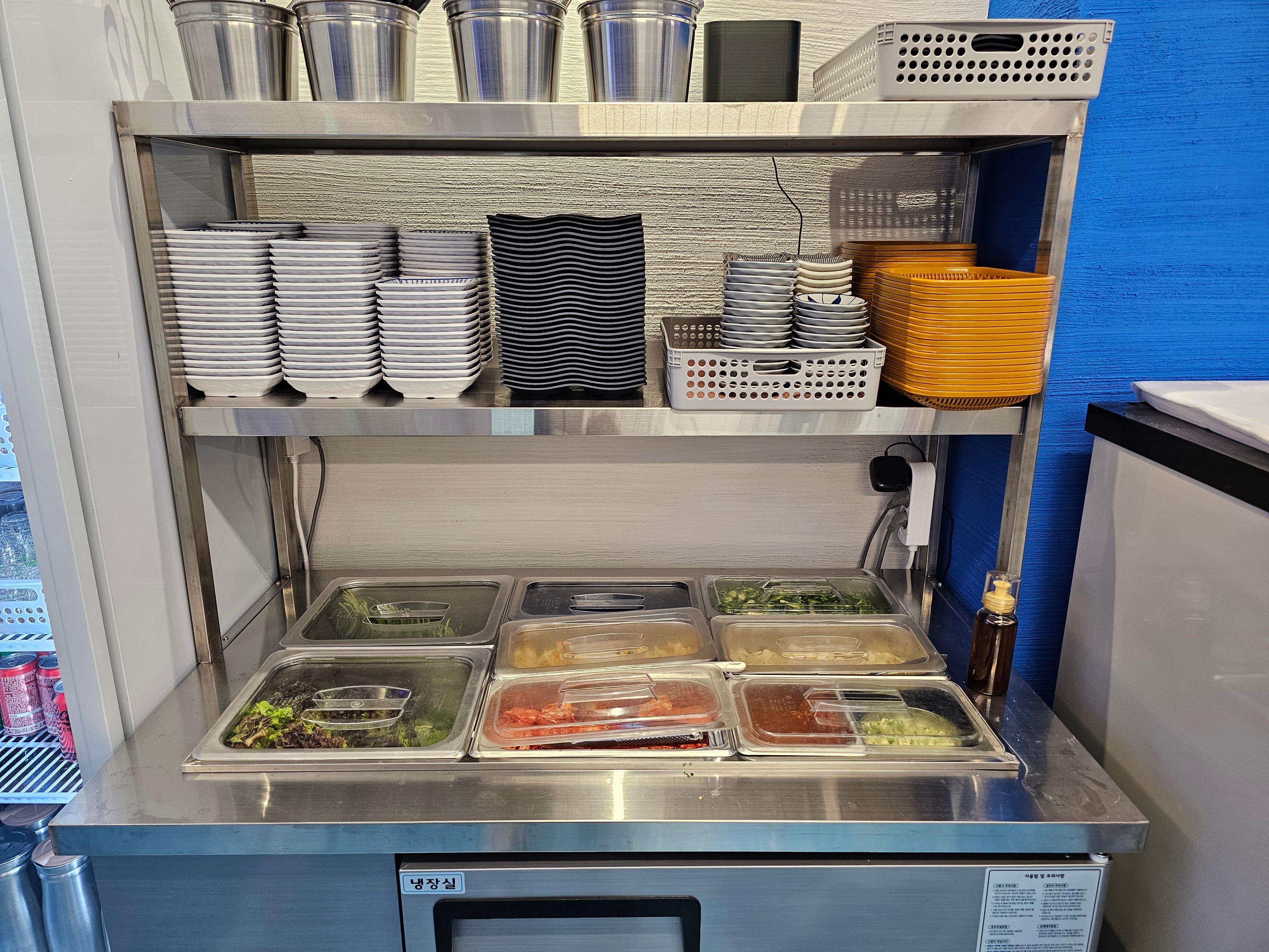 셀프 코너에 있는 야채와 반찬들은 사장님이 꼼꼼하게 신경 쓰시는 거 같더라고요.